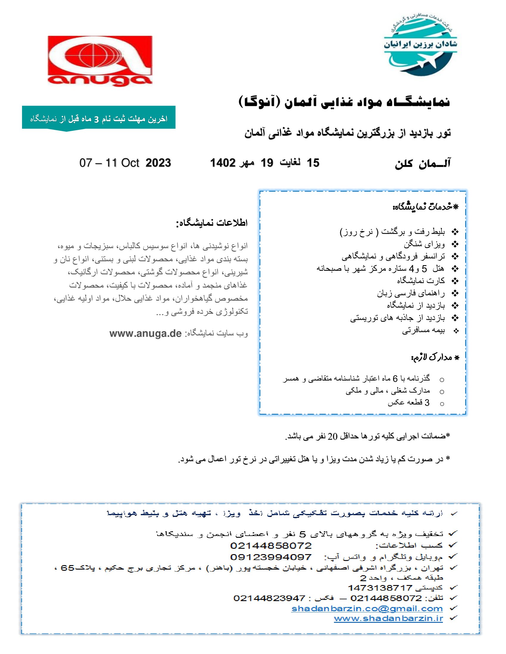 تورهای نمایشگاهی نمایشگـاه مواد غذایی آلمان آنوگا آگوست 17, 2023 ارسال شده توسط administrator 17 آگوست